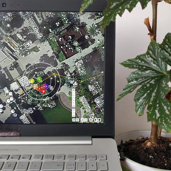 Kleos explora los jardines como espacios de coexistencia, vinculando especies botánicas con fragmentos científicos, artísticos y sonoros, que se activan y combinan en función de la cercanía de los usuarios en el espacio a través de una app.